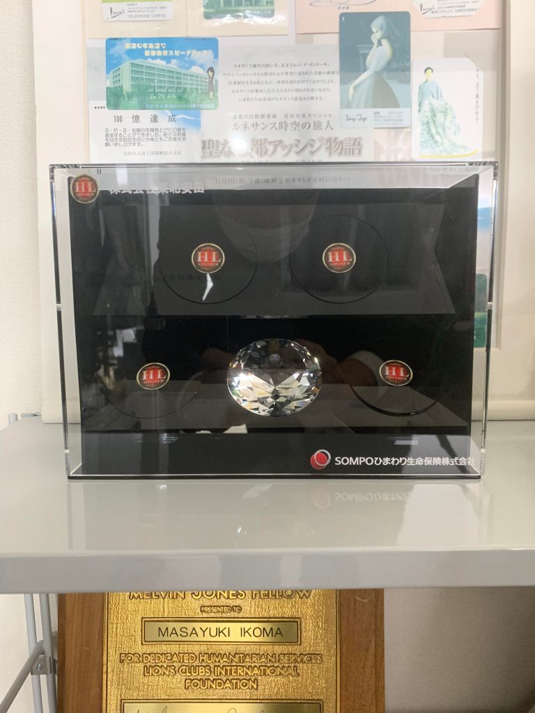 2021年度上半期もHLアドバイザー入賞し、ダイヤ型のトロフィーをSOMPOひまわり生命さんからいただきました。